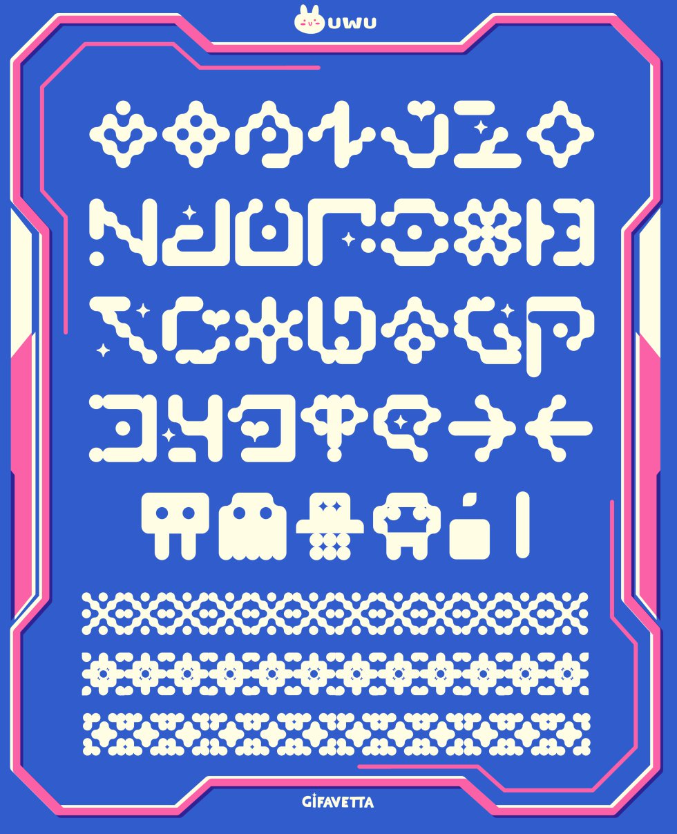 TechnoBlurble is a fantasy font created for my illustration project UWU os, a fictional operation system from a magic world.
